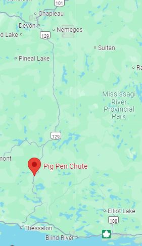 I first discovered Pig Pen Chute in autumn 2022, on the homeward-bound portion of my first big teardrop camper road trip to Lake Superior’s east coast. I had decided to head inland at Wawa to avoid poor weather affecting coastal regions, which took me to Chapleau, then onward to the hidden gem that is Wakami Lake Provincial Park for a few days, and subsequently south on Hwy 129 to rejoin Hwy 17.