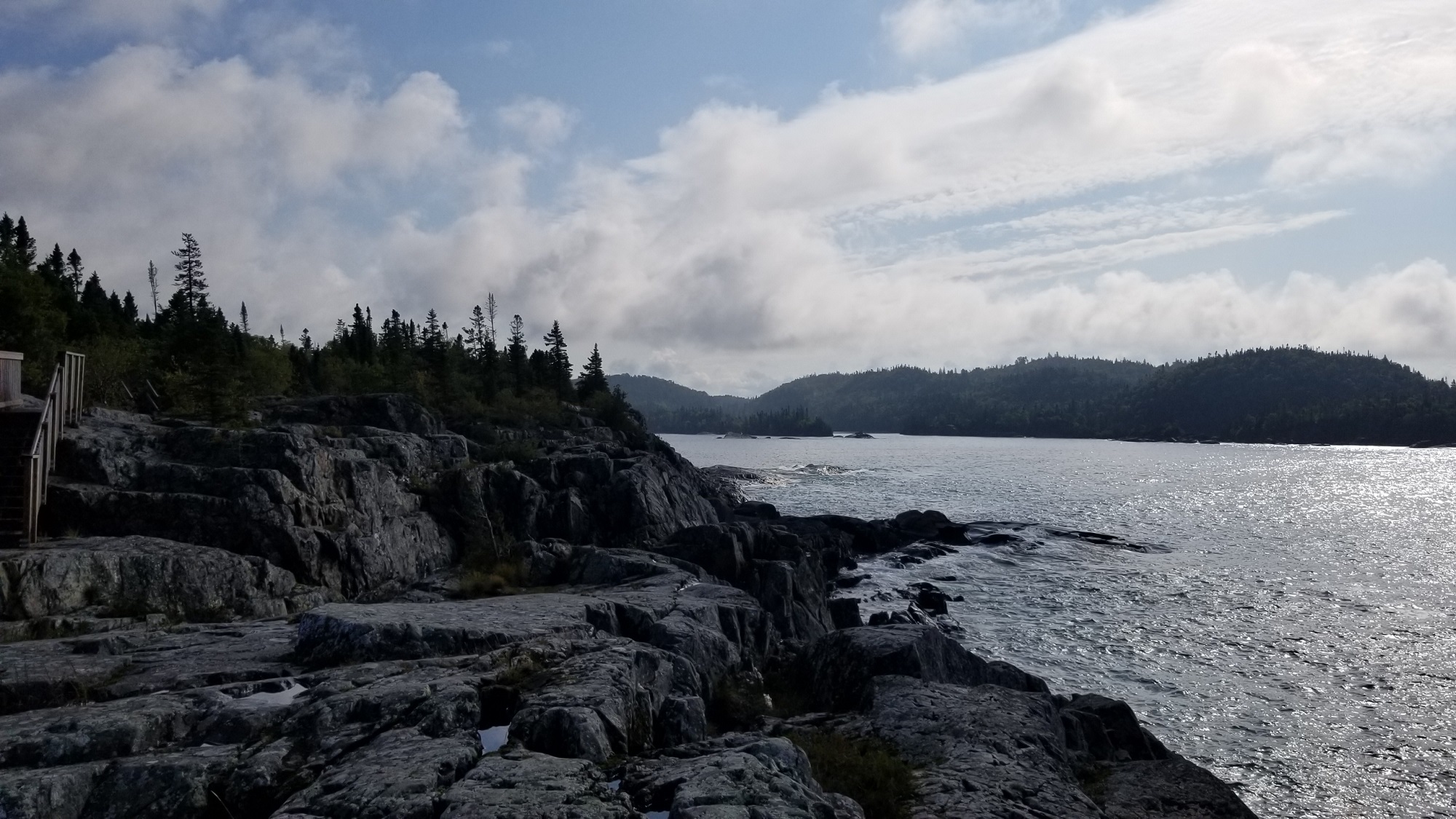 Hattie Cove is a large protected inlet off of wild Lake Superior. Looking out at the gorgeous view from the Visitor Centre, located just inside the mouth of the inlet, the scene appears so uncannily BC-like that you almost expect to see a Sea Otter pop up out of the water.