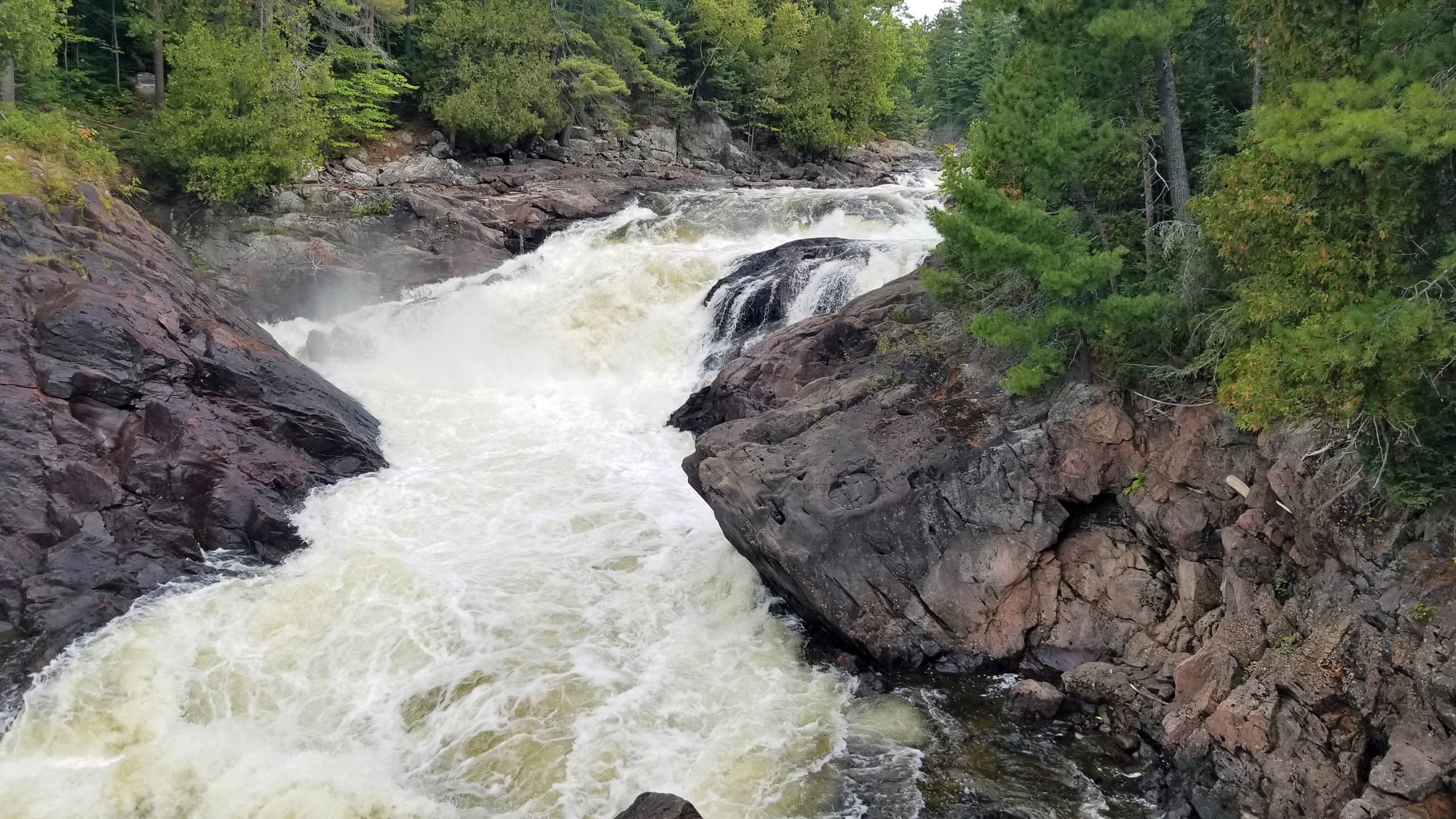 A half-hour south of the park is the town of Temiscaming, along the way to/from an unassuming two-lane inter-provincial bridge over the headwaters of the Ottawa River. Maybe I am idealizing the French European influence, but I don’t know I’ve ever passed through a little rural town elsewhere which has a Venetian fountain. A small but charming town, with friendly people and nothing seeming to be in any big rush. Also to be found are some shops for provisions.